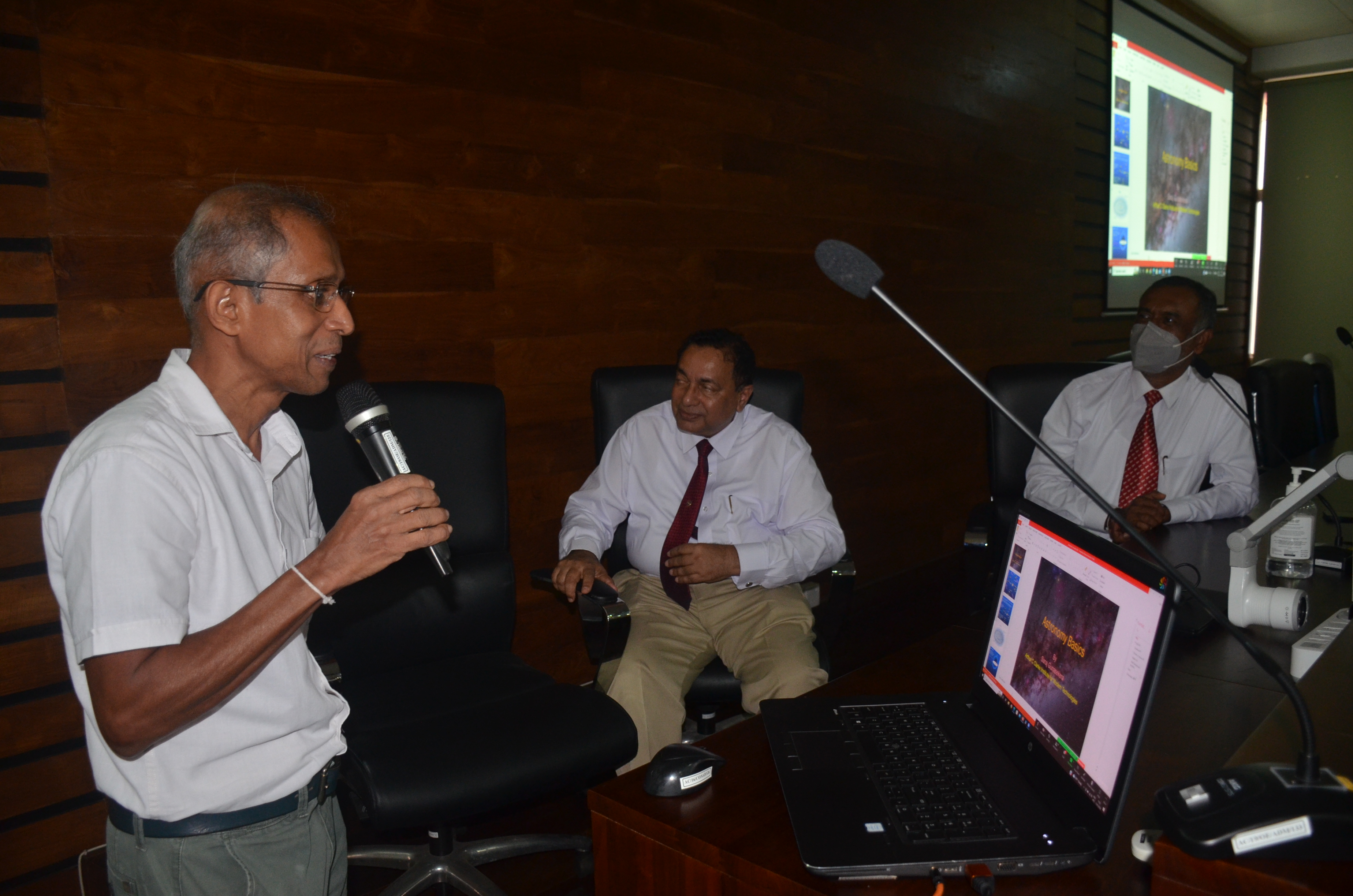 විද්‍යා ගුරුභවතුන් හා පාසල් දරුවන් වෙනුවෙන් පැවැති මෙම වැඩසටහනෙහි දේශන ලෙස   “අභ්‍යවකාශ කාලගුණය සහ පෘථිවිය මත එහි බලපෑම්” මහාචාර්ය චන්දන ජයරත්න මහතා විසින් ද , “නැනෝ චන්ද්‍රිකා තාක්ෂණය” පිළිබඳව පර්යේෂණ ඉංජිනේරු ජයකමල් අබේසේකර මහතා විසින්ද, “තාරකා විද්‍යාව” පිළිබඳව ජේෂ්ඨ පර්යේෂණ විද්‍යාඥ සරාජ් ගුණසේකර මහතා විසින්ද පවත්වනු  ලැබූ අතර මෙම වැඩසටහන සඳහා ආතර් සී ක්ලාක් ආයතනයේ සභාපති මහාචාර්ය චන්දන ජයරත්න, අධ්‍යක්ෂ ජෙනරාල් ඉංජිනේරු ,ආචාර්ය සනත් පනාවැන්නගේ මහතා ඇතුළු පිරිසක් ද සහභාගී වූහ.