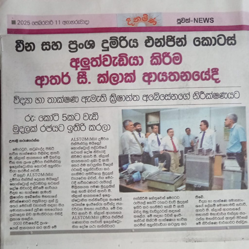 විද්යා හා තාක්ශණ අමාත්ය ක්රිශාන්ත අබේසේන මහතා ආතර් සී. ක්ලාක් ආයතනයේ සමීක්ශණ චාරිකාවකට එක් වෙයි