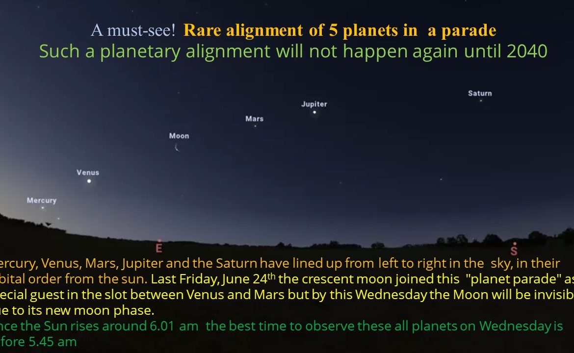 A Rare Alignment of 5 Planets