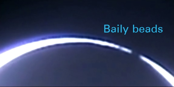 In a Total solar eclipse the Sun is completely covered by the Moon on New Moon day where the moon is at a point relatively close to the Earth in its elliptical orbit. During a total eclipse the shadow known as umbra is casted by the moon totally obscured the Sun. People standing on those parts of the Earth, within the Umbra, observe the Sun’s face completely hidden by the Moon.