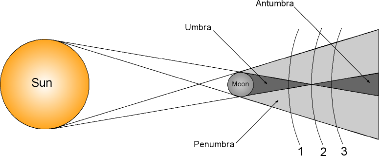 Annular eclipse occurred when  the Moon is in its elliptical orbit farther from the Earth. This results that the umbra is too short to reach the Earth. However, the Moon is directly in front of the Sun, so the parts of the Earth right-underneath it, see the antumbra where the center of the Sun is covered. This leaves a ring, an annulus, of the Sun visible round the edges of the Moon. Penumbra is also visible just outside the antumbra. (Images are not to scale)
