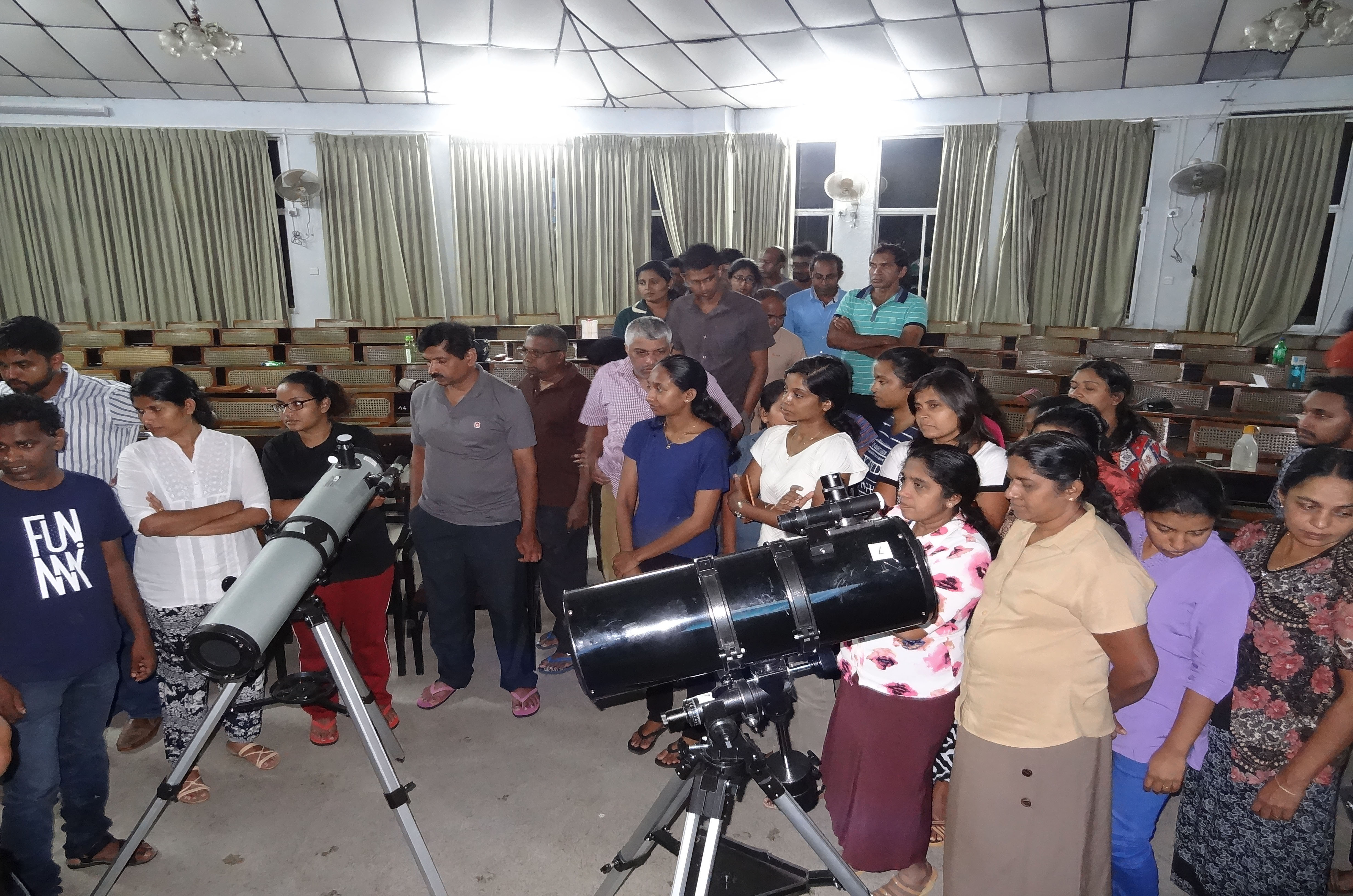 Hand on Experience: Observations through Modern Telescopes (including Sri Lankan largest telescope), Spectroscopy, Solar Observations and use of H alpha solar filters, Construction of Astronomical Tools, Sky Mapping, Launching Water Rocket and Construction of Simple Refractor Telescopes etc.