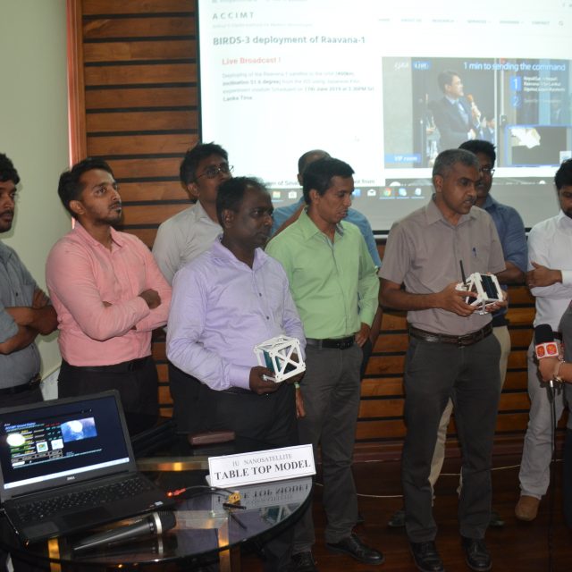 The first CW (Continuous Wave) beacon identifications of all three satellites were received by the ACCIMT ground station during a pass through Sri Lanka at about 17.55 on the same day. Thereafter several ground stations (in the ‘Birds’ network) are receiving signals form the satellite and commands from Japan are acknowledged by the Raavana-1. Once the satellite is allowed to be commanding from Sri Lanka, it is expected to receive data from the payloads which are to be used for research purposes and system designs tested for space heritage for the next satellite development project.