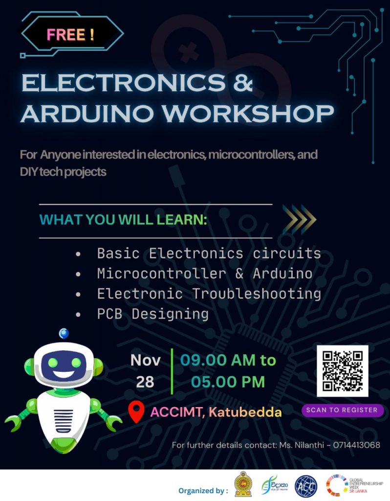 Are you curious about electronics, Arduino, and PCB design? The Arthur C. Clarke Institute of Modern Technology (ACCIMT), Katubedda invites students, hobbyists, and tech enthusiasts to a one-day hands-on workshop!