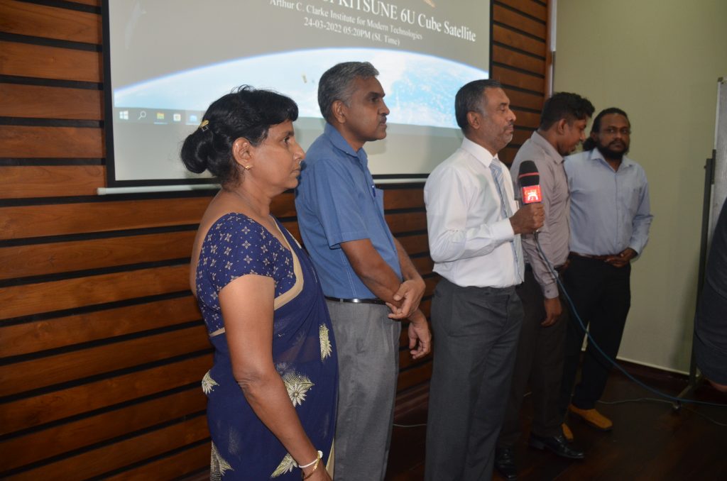 The KITSUNE Nano Satellite, designed and developed through a five-partite international collaborative project, with the Arthur C Clarke Institute for Modern Technologies (ACCIMT) as one partner, was successfully deployed into its orbit from the International Space Station (ISS) on the 24th of March 2022. The orbital deployment of the satellite took place at around at 17.41 Sri Lanka time. The ACCIMT organized a live video-viewing session of the event, where a live video feed on the deployment of the satellite from the ISS at an altitude of approximately 400km above the earth, which was channeled through the Japanese Aerospace Exploration Agency (JAXA), was displayed at the auditorium of ACCIMT. This was preceded by a brief presentation on the ACCIMT’s Nanosatellite development programme.