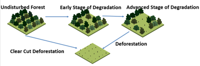 Forest cover is a critical ecosystem component. Deforestation and forest degradation are the biggest threats to forests worldwide. Deforestation occurs when forests are converted to non-forest uses, such as agriculture and road construction etc. Now a day’s Satellite data have been used with varying degrees of success in monitoring of deforestation. But, Degradation is difficult to monitor because when the degradation occurs, the forests functions are getting reduced but the forest still exists.