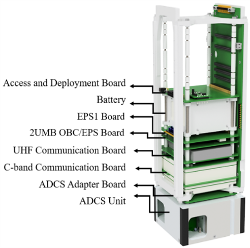 * Downlink of low-resolution images from a secondary camera by C-band uplink commands and amateur radio service.